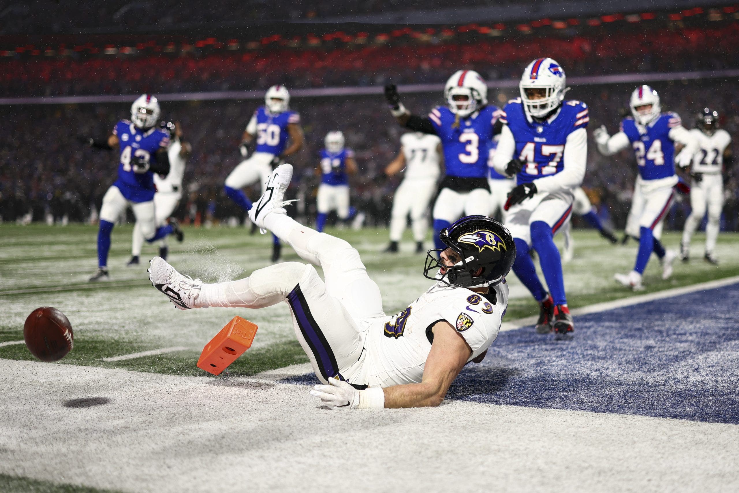 The Ravens lost to the Bills in last season’s AFC divisional round. (Photo by Kevin Sabitus/Getty Images)